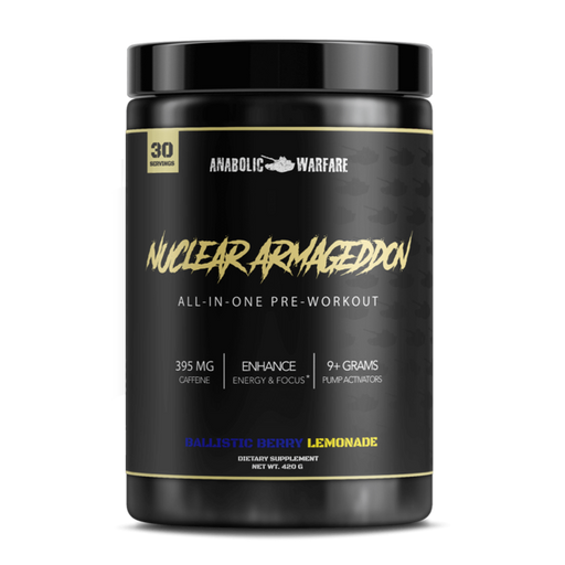 Save 14% Save 14%NUCLEAR ARMAGEDDON by Anabolic WarfareOriginal price $49.99Current price $42.99| /Nuclear Armageddon is the perfect marriage of energy and performance. L-Citrulline increases blood flow and dilates blood vessels. Betaine drives p... View full detailsOriginal price $49.99Current price $42.99| /Save 14%